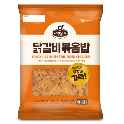 - 쉐프원 닭갈비 볶음밥 1봉지(300g)의 열량은 약 450kcal로, 한 끼 식사 대용으로 안성맞춤입니다.